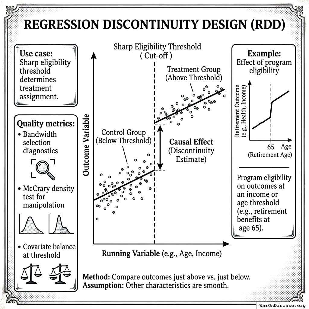 ├── Regression discontinuity: sharp threshold exists