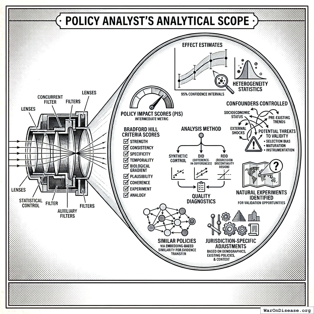 policy evaluation, causal inference, quasi-experimental methods, synthetic control, difference-in-differences, Bradford Hill criteria, evidence-based policy, policy recommendations, jurisdiction analysis
