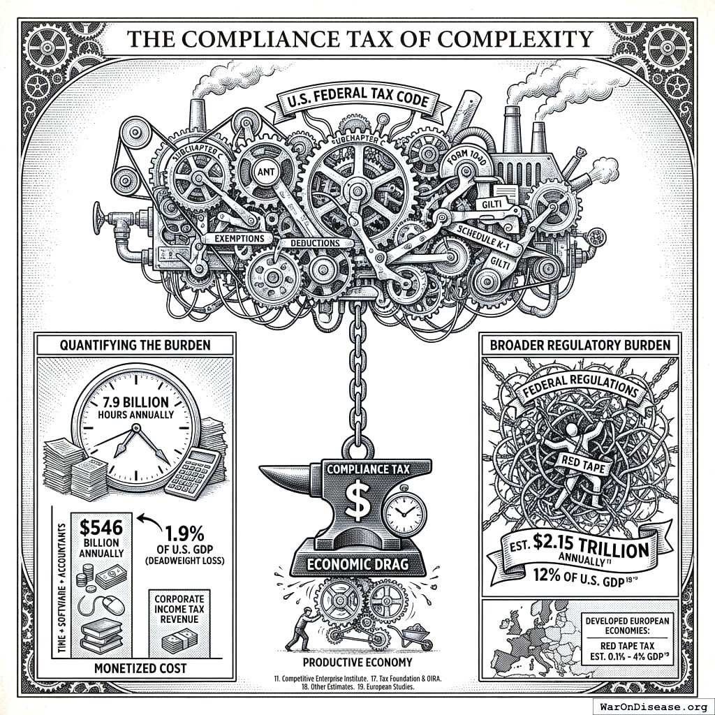 The mechanism of taxation itself has become a primary source of economic drag. The U.S. federal tax code, characterized by extreme complexity, imposes a heavy “compliance tax” on the productive economy.