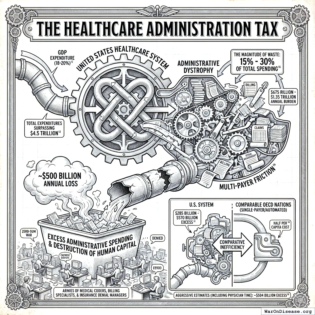 This ~$500 billion annual loss is not merely a transfer; it is a destruction of human capital. It represents armies of medical coders, billing specialists, and insurance denial managers whose labor is engaged in a zero-sum war over payments rather than the production of health outcomes.