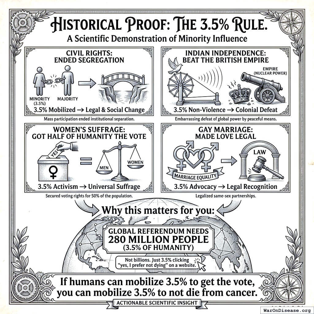 What scientists discovered: When just 3.5% (95% CI: 1%-10%) of a population actively participates in sustained resistance, success becomes nearly inevitable. Not 51%. Not a majority. Just 3.5% (95% CI: 1%-10%).